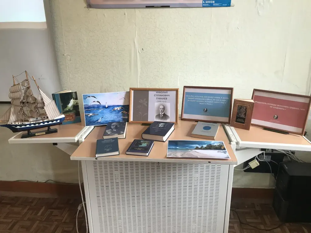 Ребята с интересом погрузились в атмосферу эпохи, вспомнили ключевые моменты биографии поэта, его непростые отношения с Анной Ахматовой и неустанные поиски себя в искусстве. Особое внимание уделили влиянию экзотических путешествий на творчество Гумилёва: именно они сформировали его романтический образ «конквистадора», покорителя неизведанных земель и новых смыслов. В ходе мероприятия прозвучали знаменитые стихи, раскрывающие темы любви, войны и философии. Среди них — «Она», «Капитаны», «Наступление», «Еще не раз вы вспомните меня». К мероприятию была подготовлена книжно-иллюстративная выставка «Николай Гумилёв: путь конквистадора». В завершение встречи прозвучала песня «Это было, это было, это было…», написанная Н. Гумилевым в исполнении Н.Расторгуева и группы Любэ.